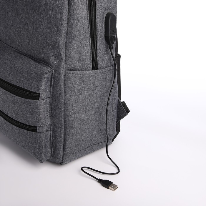 Рюкзак школьный из текстиля на молнии, USB, 5 карманов, цвет серый