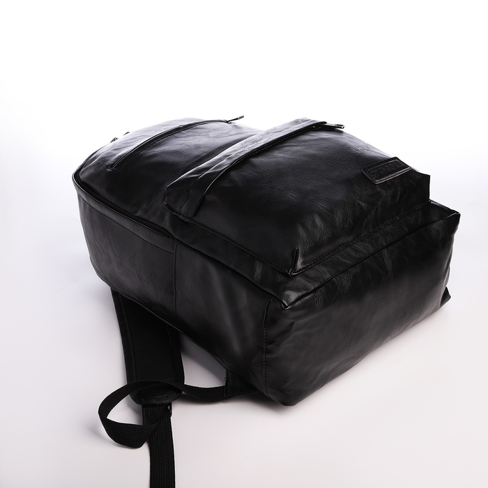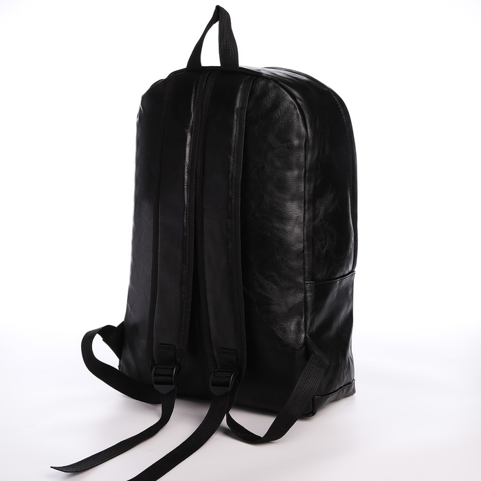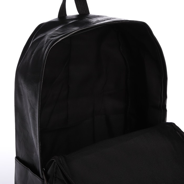 Рюкзак школьный из искусственной кожи на молнии, 3 кармана, цвет чёрный
