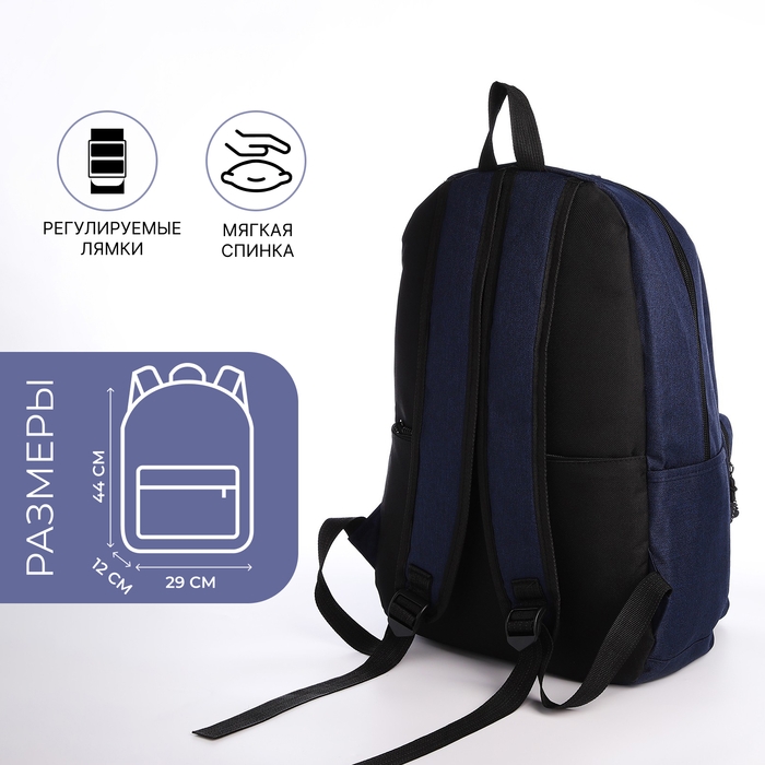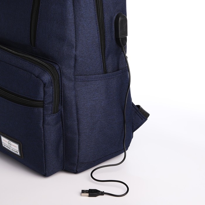 Рюкзак школьный из текстиля на молнии, 5 карманов, USB, цвет синий