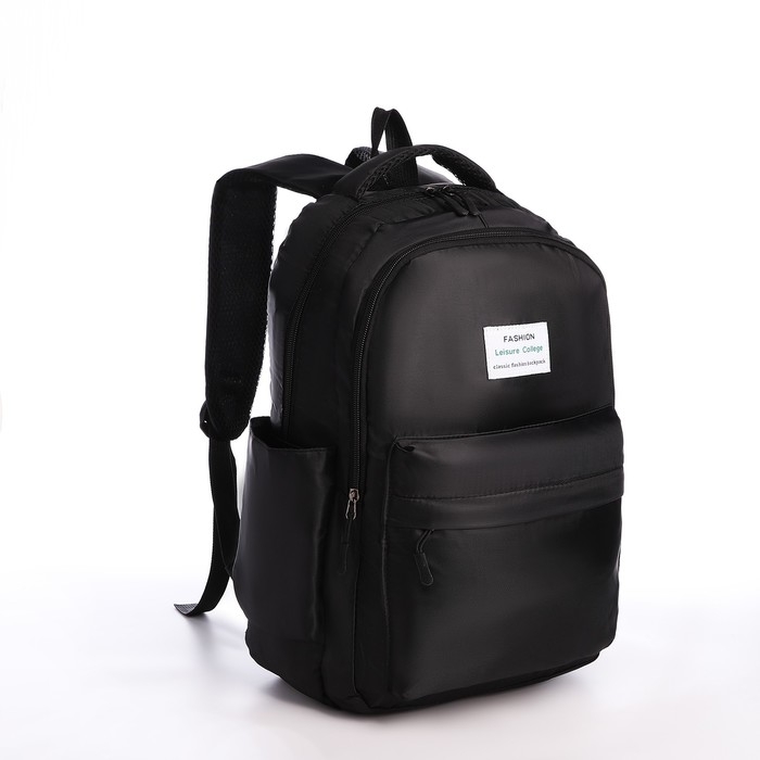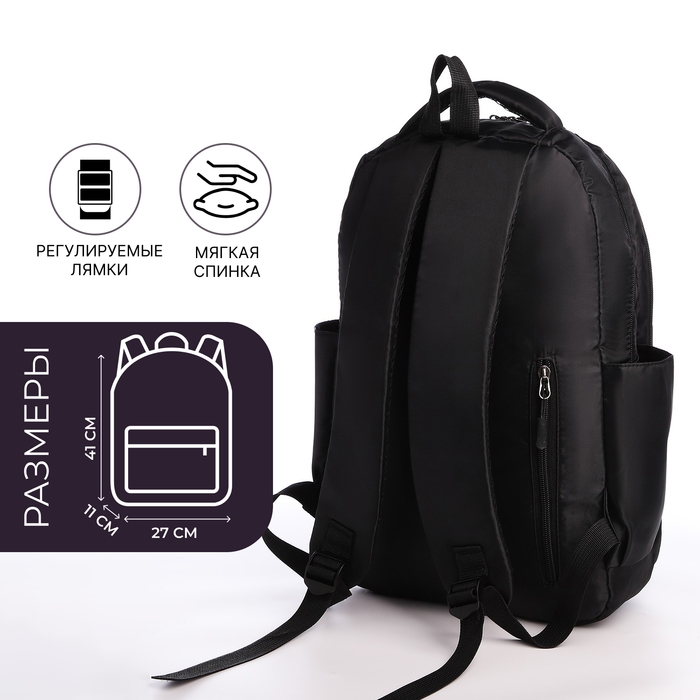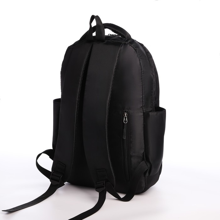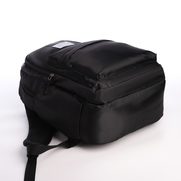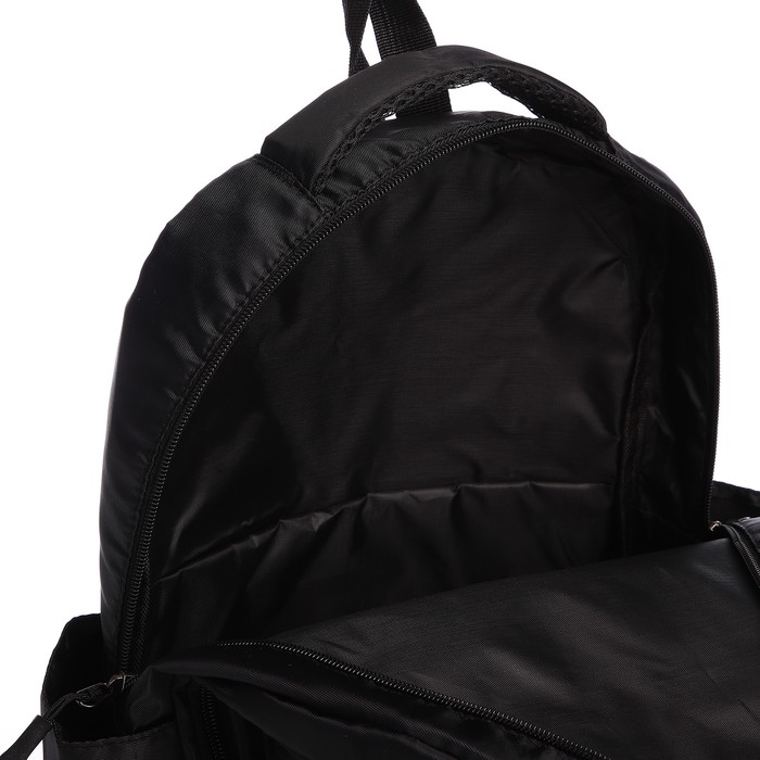 Рюкзак школьный из текстиля на молнии, 5 карманов, цвет чёрный