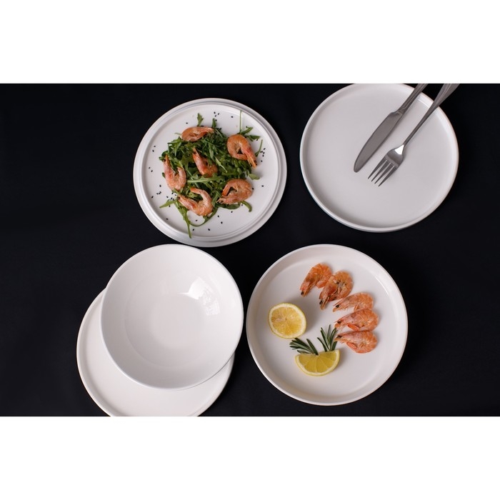 Набор тарелок керамических Доляна «Ваниль», 18 предметов: 6 тарелок d=19 см, 6 тарелок d=27 см, 6 мисок d=19 см, цвет белый