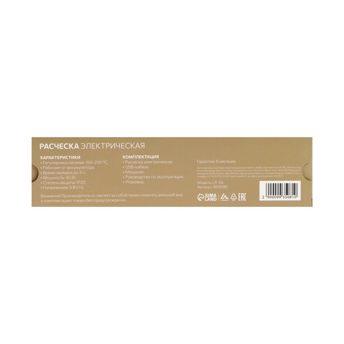 Расческа Luazon LR-03, электрическая, 45 Вт, беспроводная, регулировка t