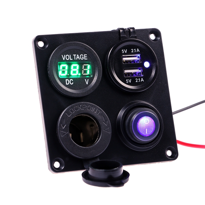 Разветвитель, вольтметр, прикуриватель, 2 USB 2,1А, 5В.