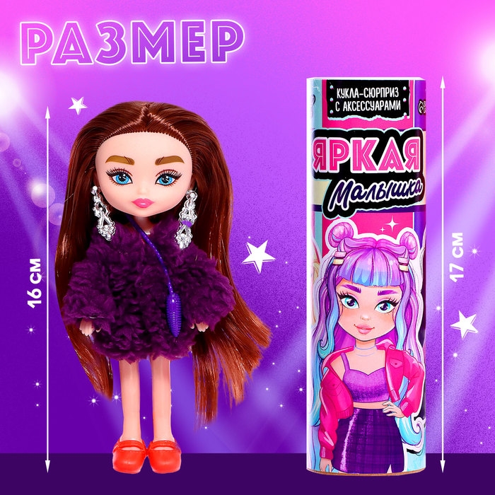 Кукла-сюрприз «Яркая малышка» с аксессуарами, в тубусе