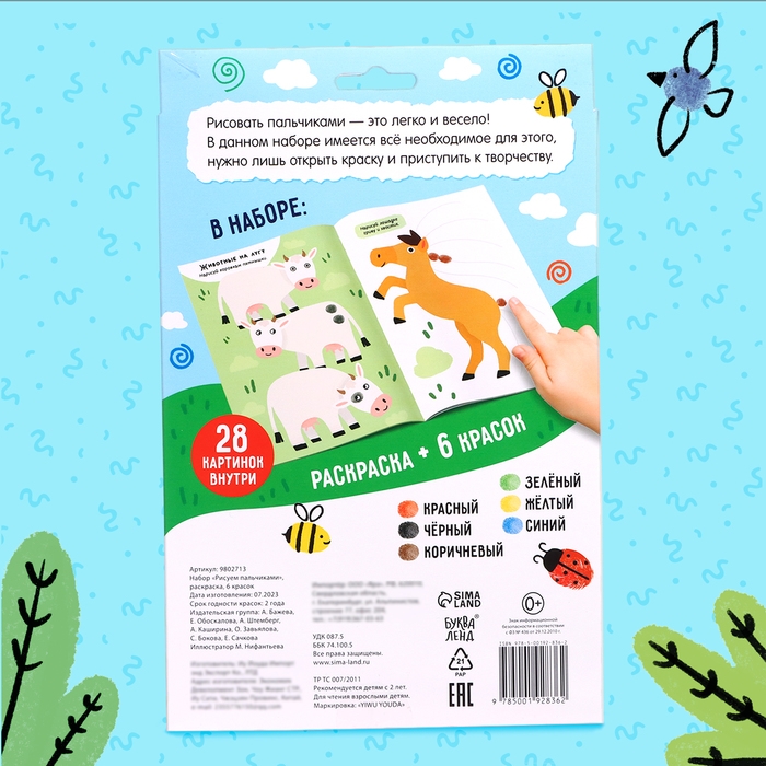 Набор «Рисуем пальчиками», раскраска, 6 красок