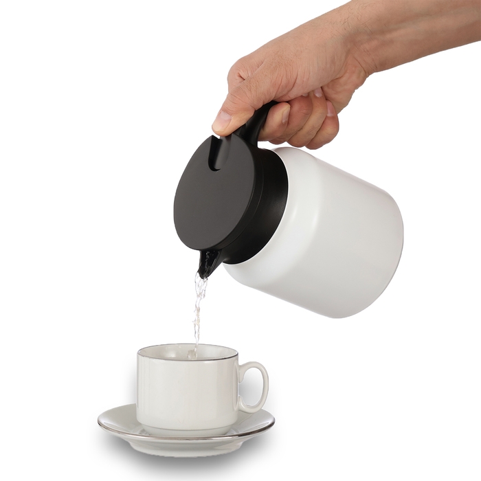Корпус термос кувшина выполнен из высококачественной нержавеющей стали, которая не только обладает повышенной прочностью и долговечностью, но и не вступает в реакцию с водой. Это гарантирует сохранение вкуса и качества вашего чая или кофе.