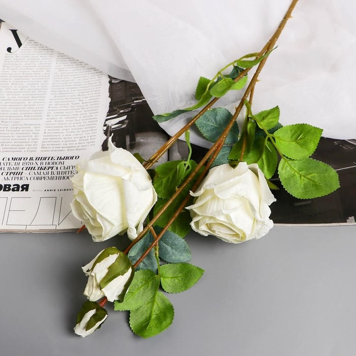Цветы искусственные "Роза Солмус" d-7,5 см 64 см, белый
