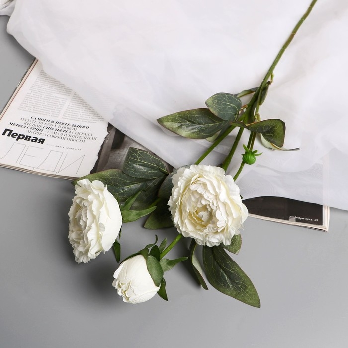 Цветы искусственные "Пион Эльза" d-10 см 64 см, белый
