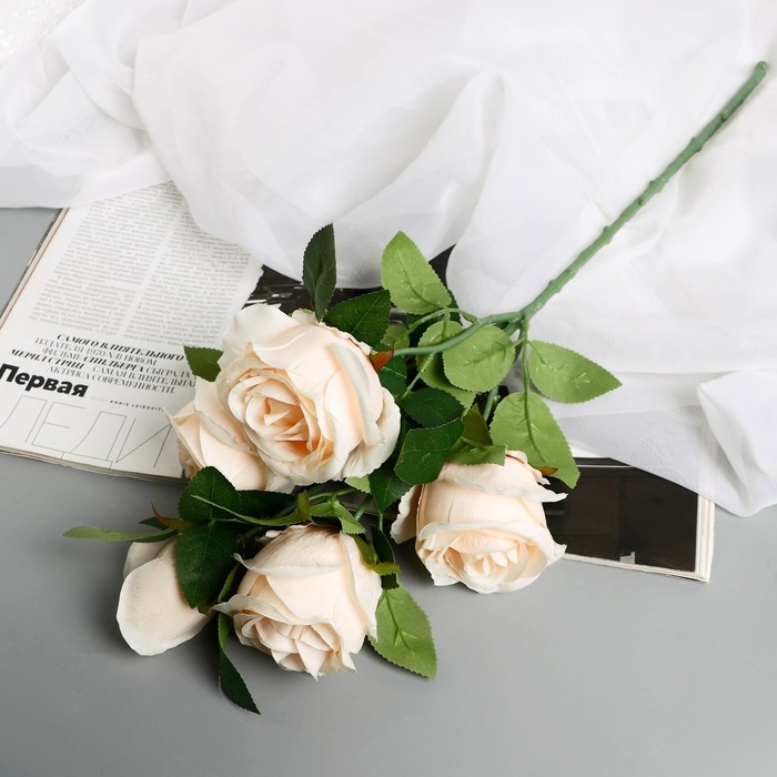 Цветы искусственные "Роза Триза" d-7 см 50 см, кремовый