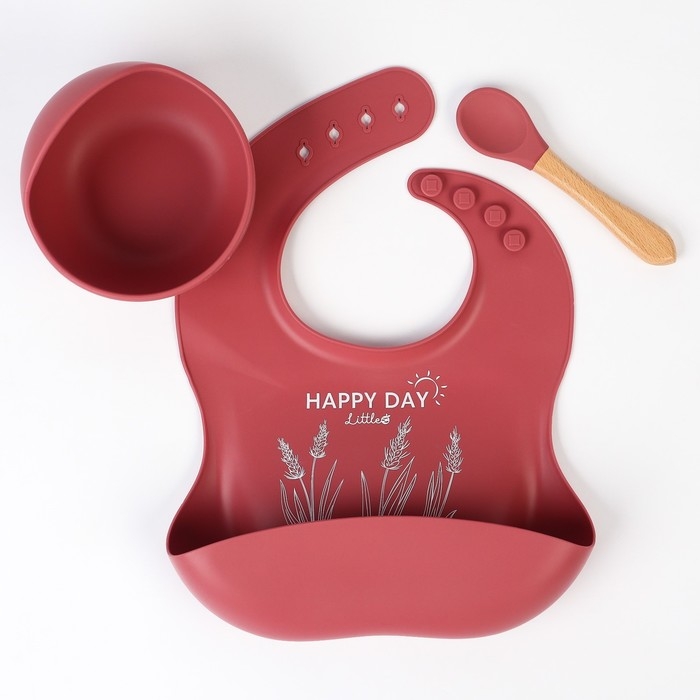 Набор для кормления: нагрудник, тарелка на присоске, ложка, M&B, вишневый