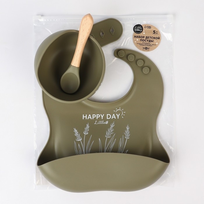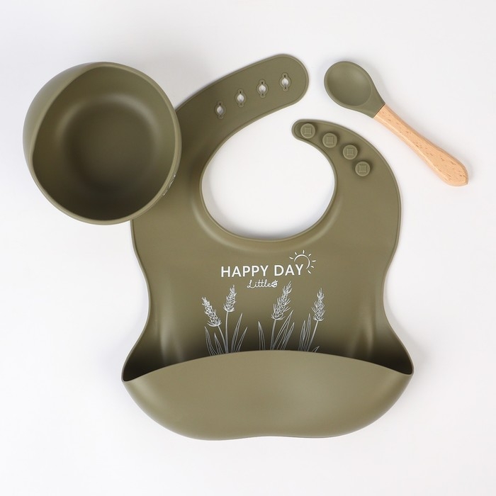 Набор для кормления: нагрудник, тарелка на присоске, ложка, M&B, зеленый