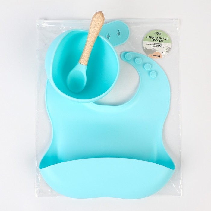 Набор для кормления: нагрудник, тарелка на присоске, ложка, Крошка Я, голубой