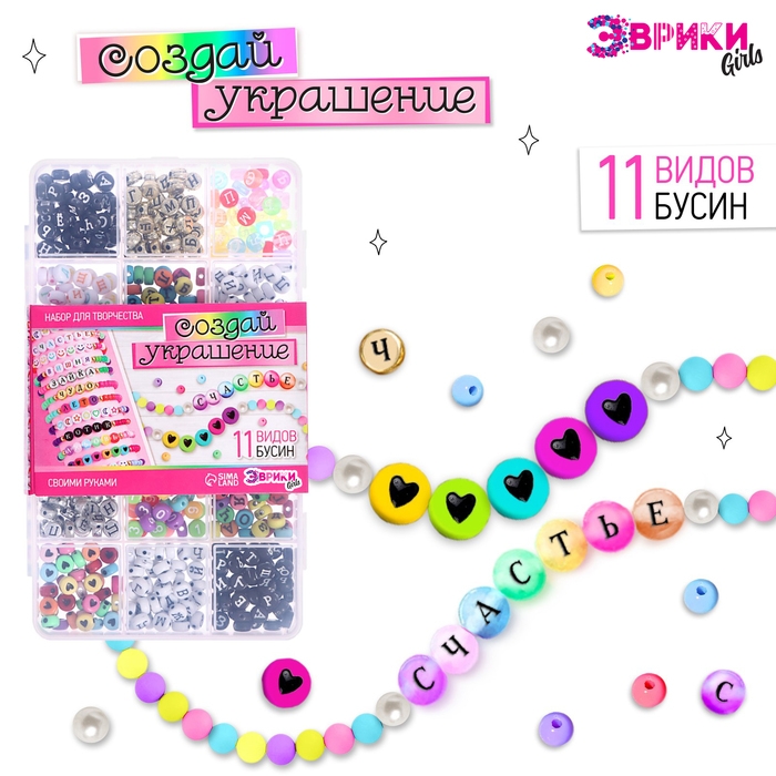 Набор для творчества «Создай украшение», буквы русские, 11 видов бусин