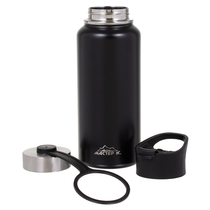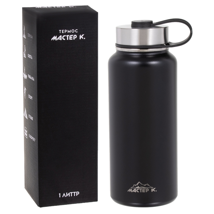 Термос "Мастер К", 1 л, две крышки, сохраняет тепло до 12 ч, черный