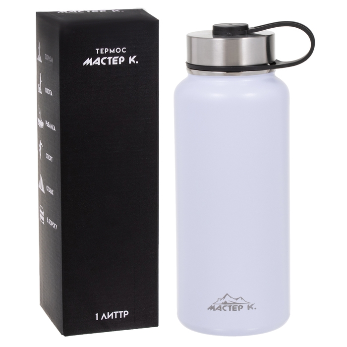 Термос "Мастер К", 1 л, две крышки, сохраняет тепло до 12 ч, белый