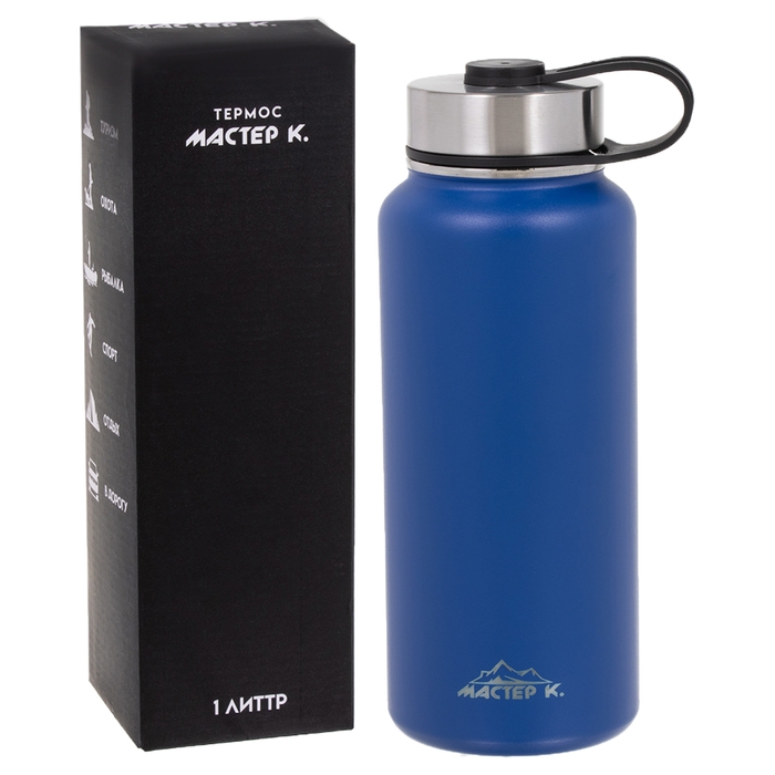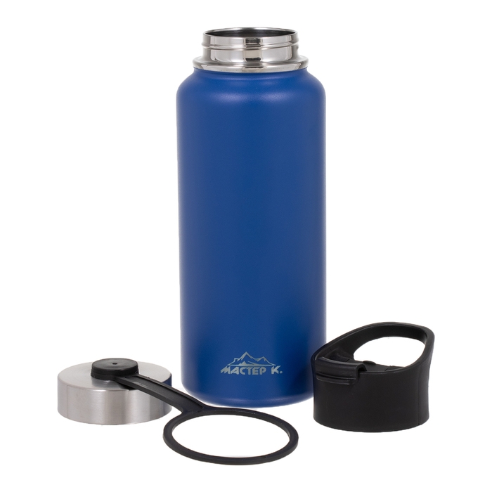 Термос "Мастер К", 1 л, две крышки, сохраняет тепло до 12 ч, синий