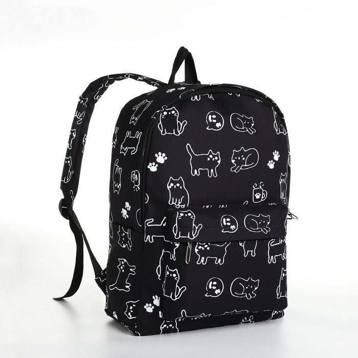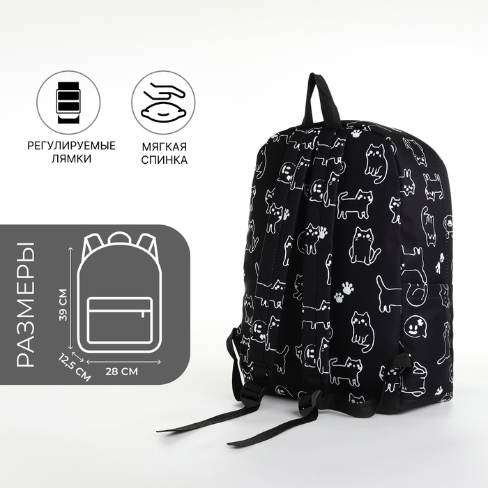 Рюкзак школьный из текстиля на молнии, 3 кармана, цвет чёрный