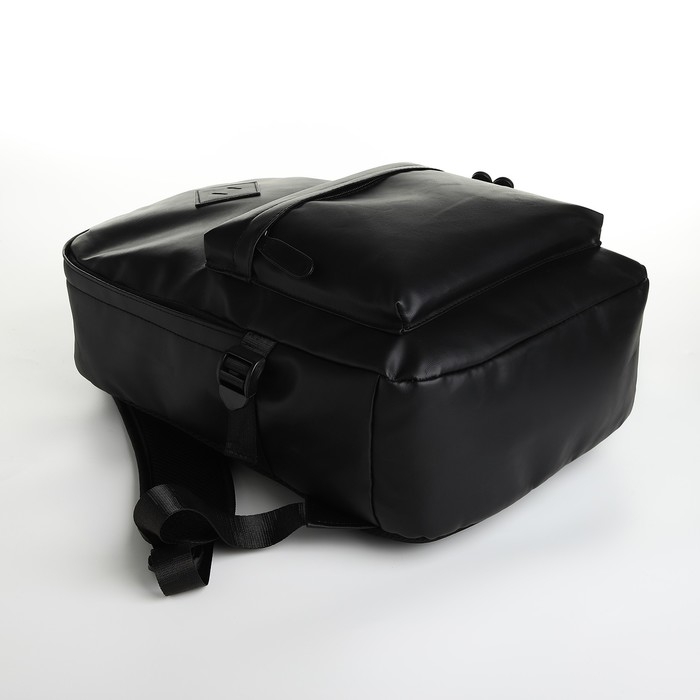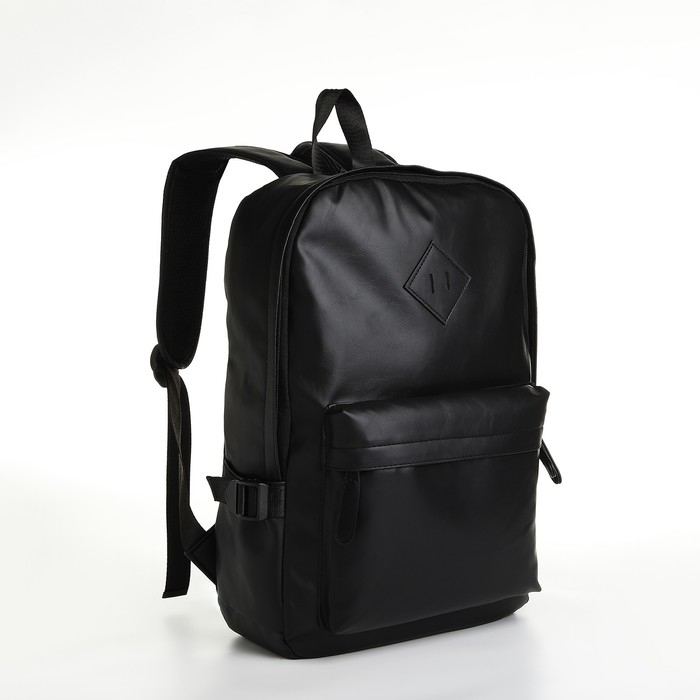 Рюкзак школьный из искусственной кожи на молнии, 3 кармана, цвет чёрный
