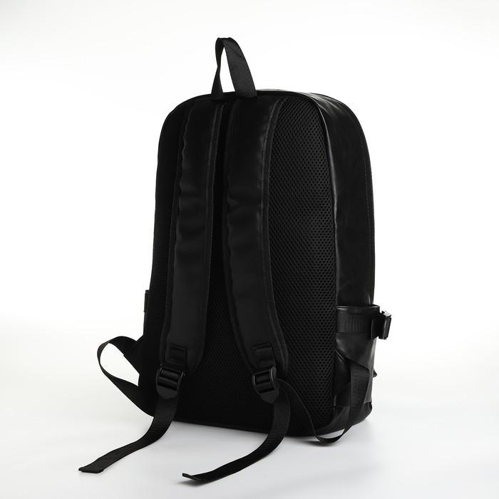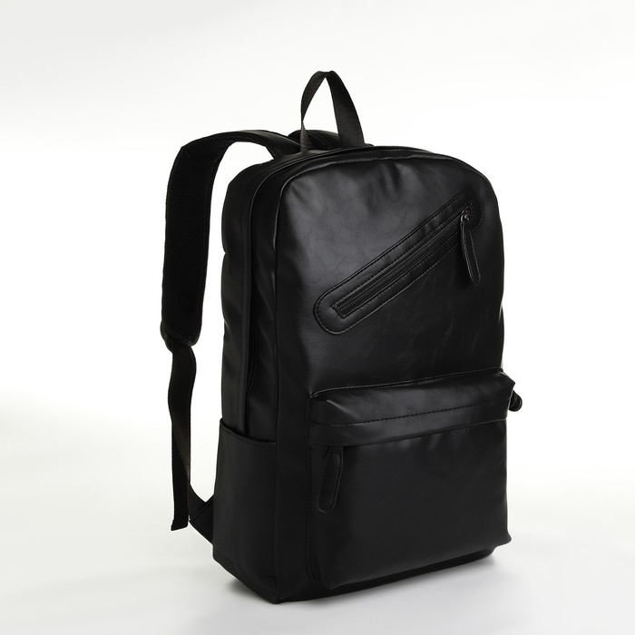 Рюкзак школьный из искусственной кожи на молнии, 3 кармана, цвет чёрный