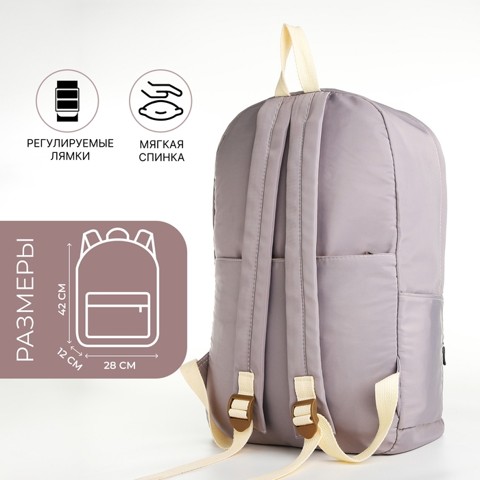 Рюкзак школьный из текстиля на молнии, 2 кармана, цвет серый