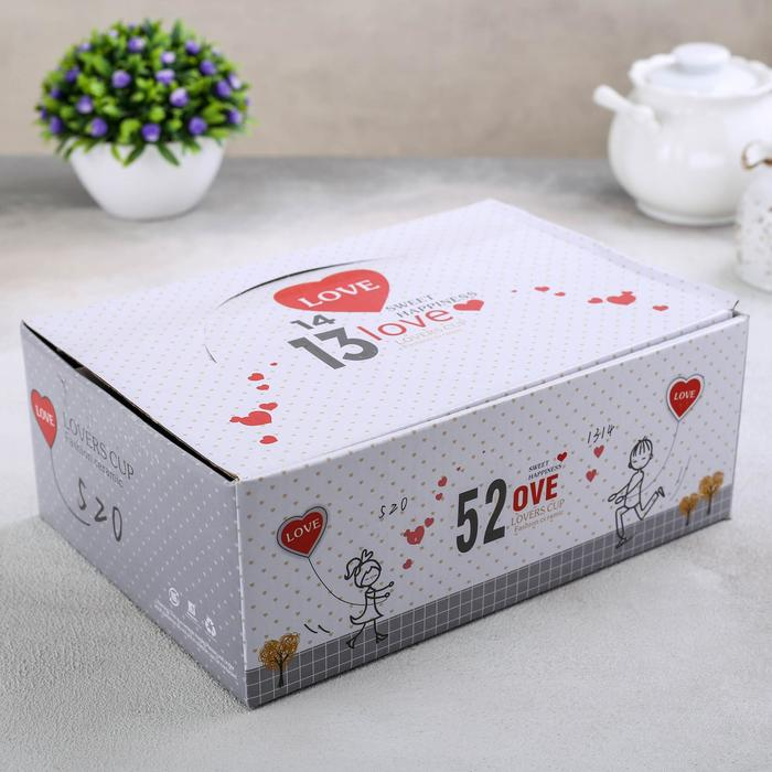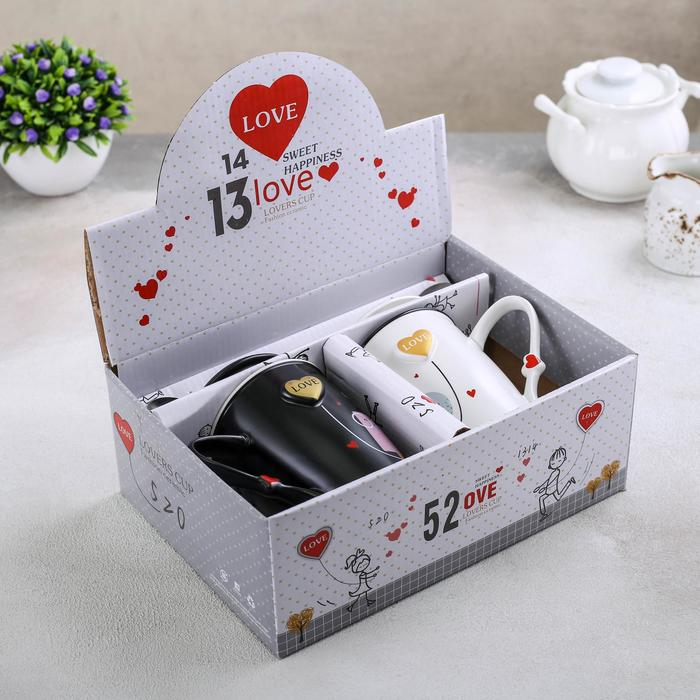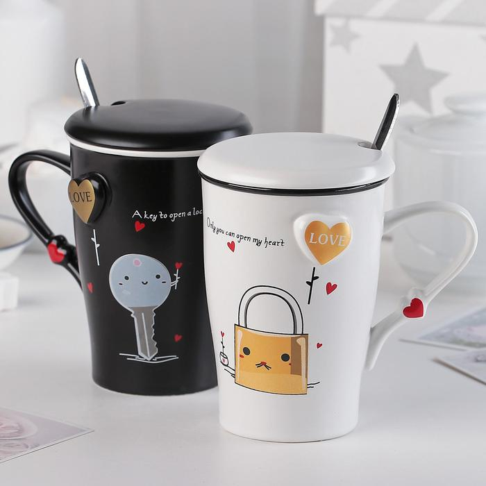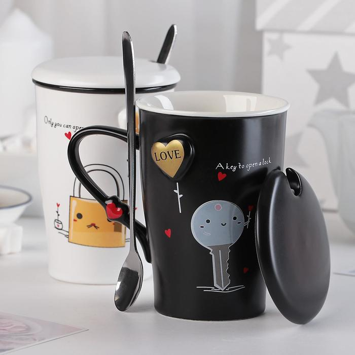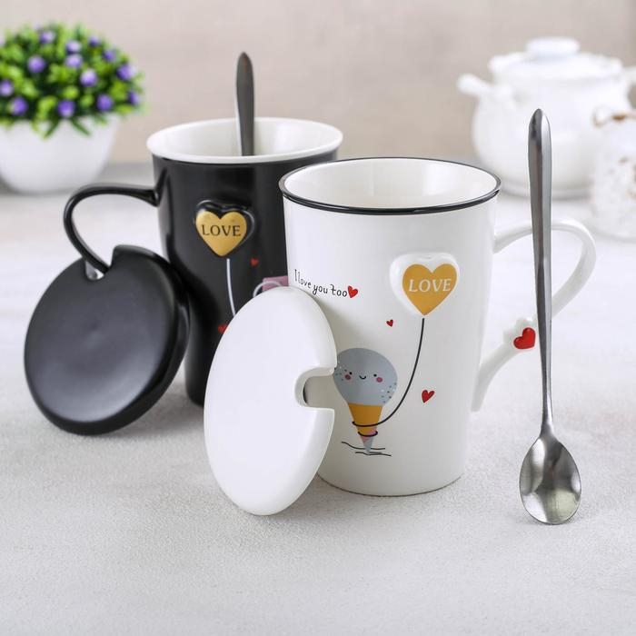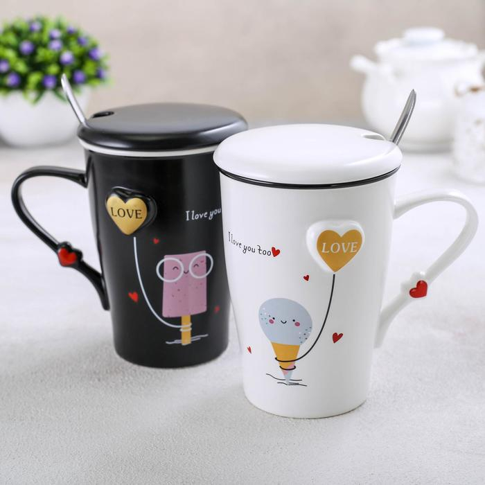 Набор кружек керамических с крышками и ложками «Узы любви», 2 предмета: 400 мл, цвет МИКС