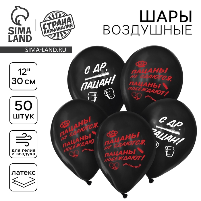 Воздушный шар латексный 12" «С ДР, пацан», 50 шт.