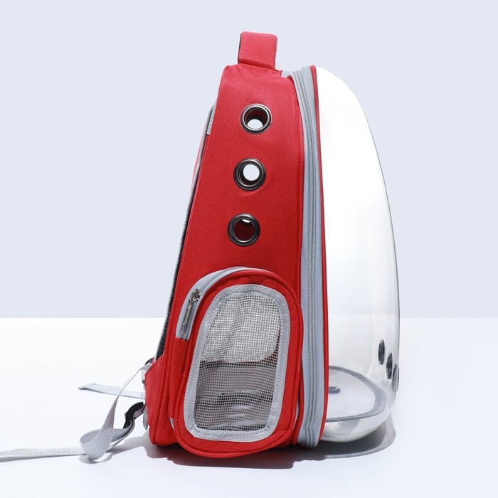 Рюкзак для переноски кошек, прозрачный, 32 х 28 х 42 см, красный