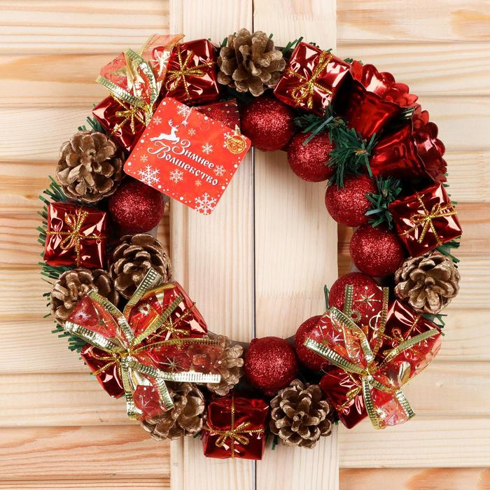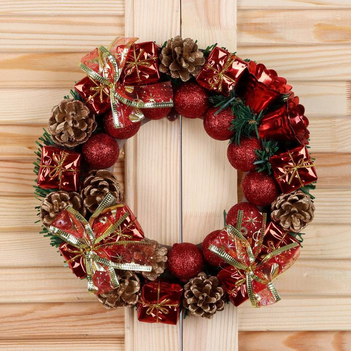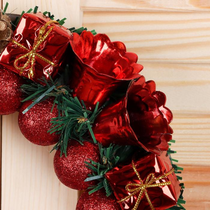 Венок новогодний d-22 см "Красные шарики, колокольчики, подарки"