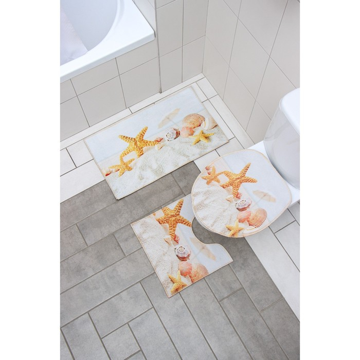 Коврики для ванной и туалета Доляна «Ракушки», 3 шт: 38×46 см, 40×45 см, 45×75 см