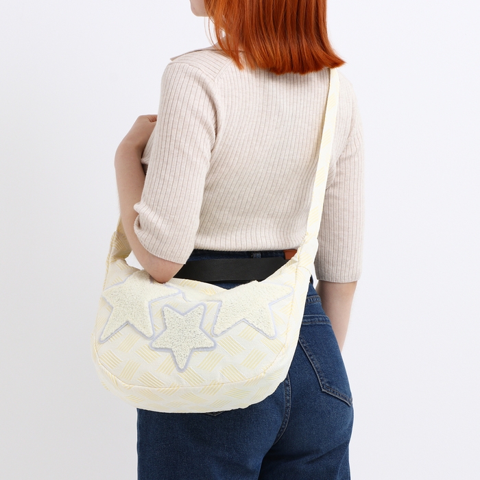 Сумка молодёжная на молнии, цвет жёлтый/белый