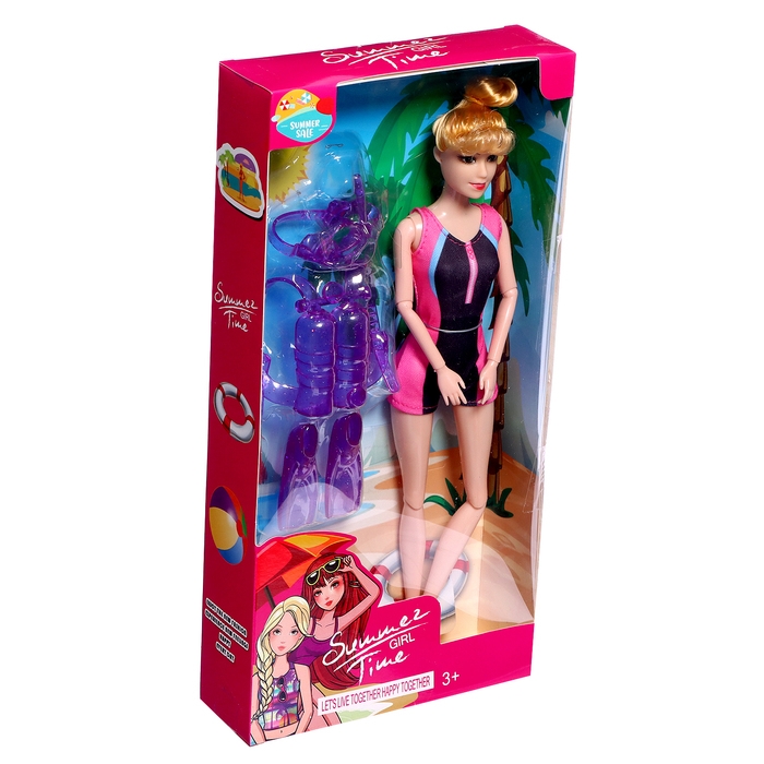 Шарнирная кукла «Ксения аквалангист» — это увлекательное развлечения для девочек. С акцентом на подвижность, у неё шарнирные руки и ноги, что позволяет придумывать различные игровые сценарии.