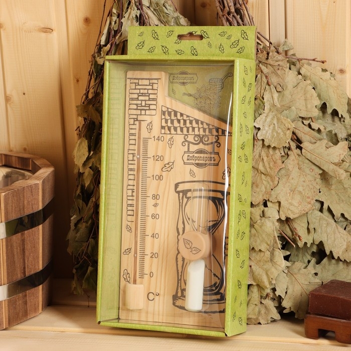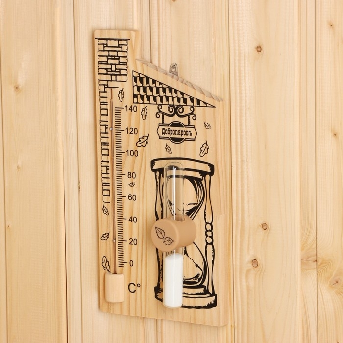 Термометр для бани с песочными часами 15 мин "Дом", деревянный, 28 х 14 см, Добропаровъ