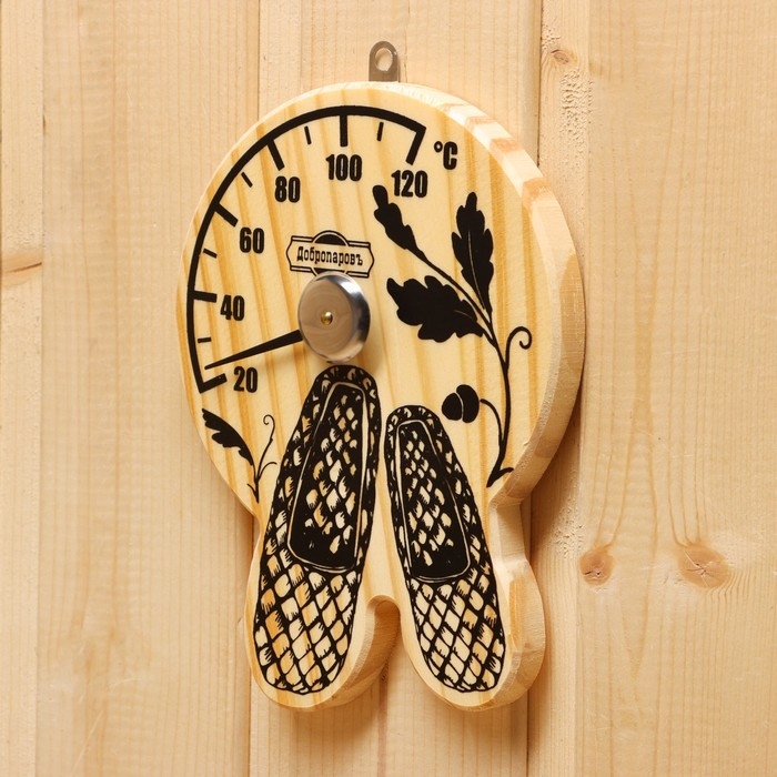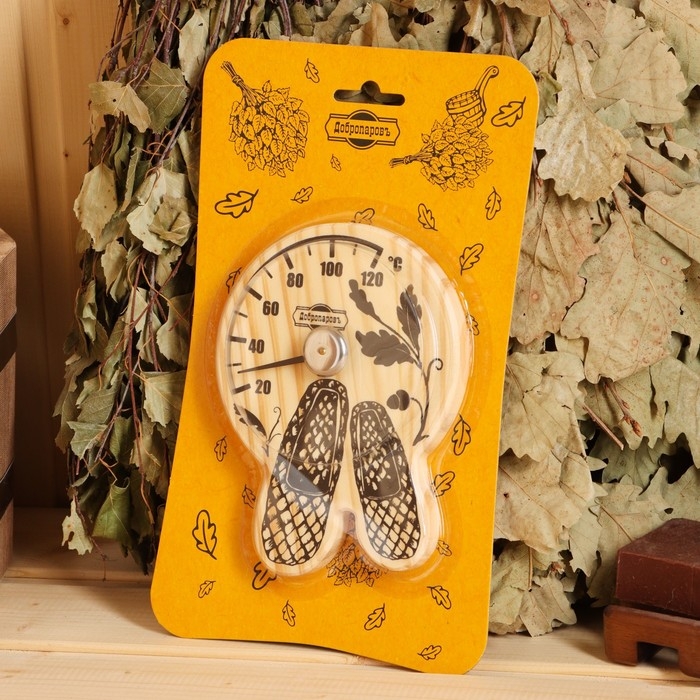 Термометр для бани "Лапти", деревянный, 16 х 12 см, Добропаровъ