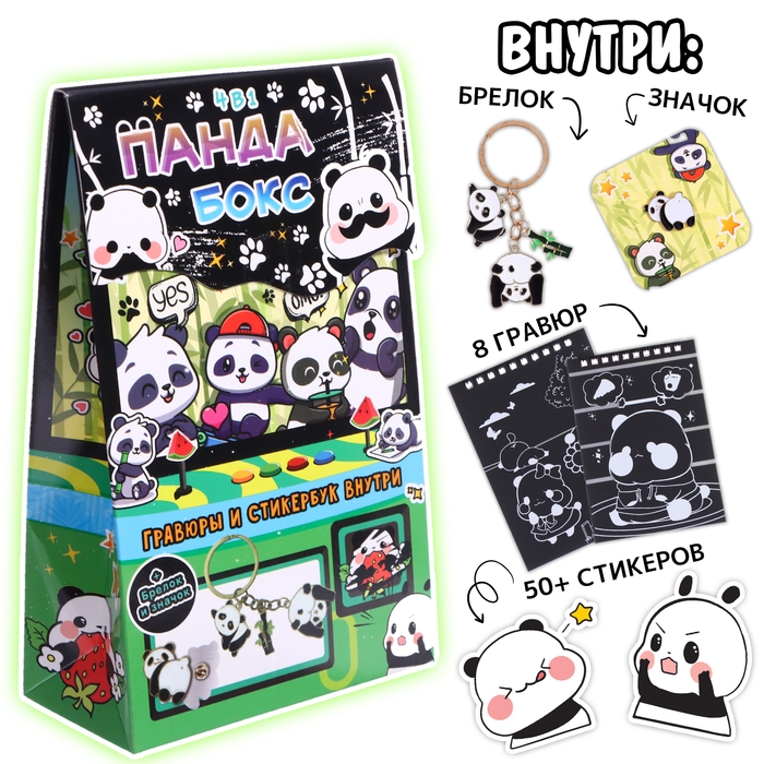 Подарочный набор книг 4 в 1 «Аниме-бокс»: гравюры + наклейки + брелок + значок