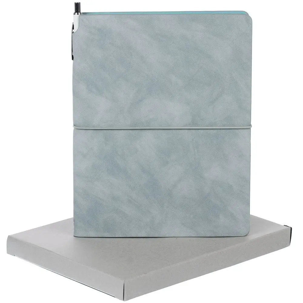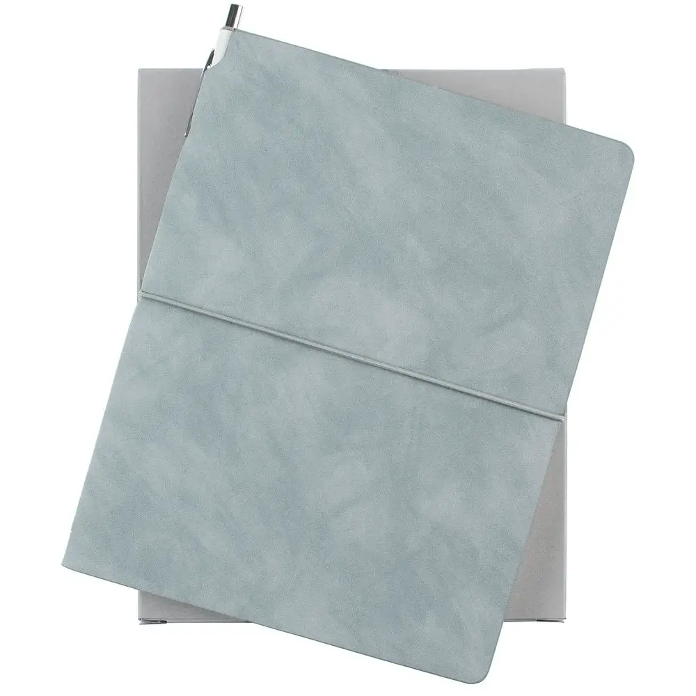 Ежедневник из искусственного материала, напоминающего замшу, и изящная ручка, которая удобно прячется за обложку ежедневника.