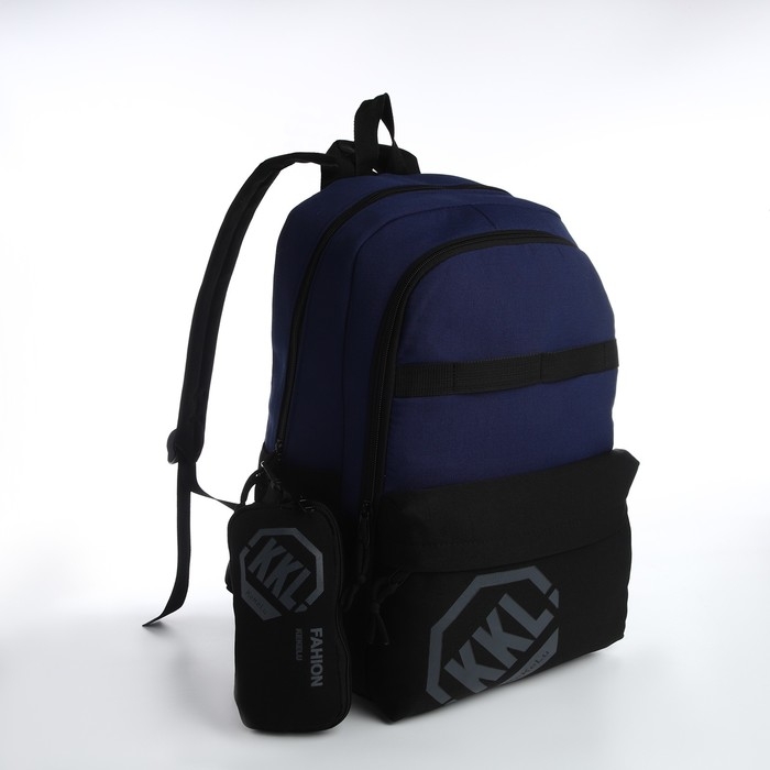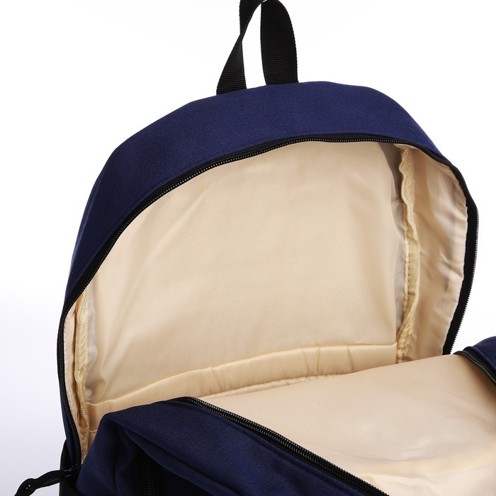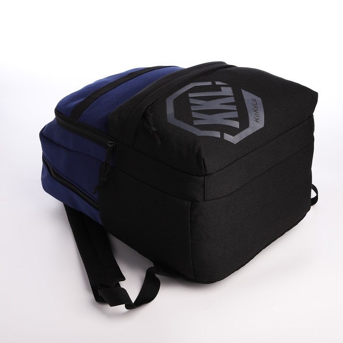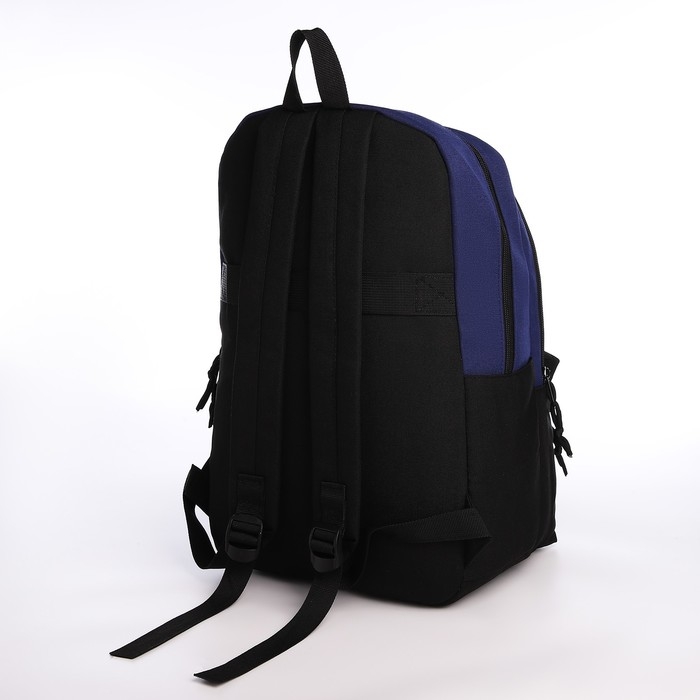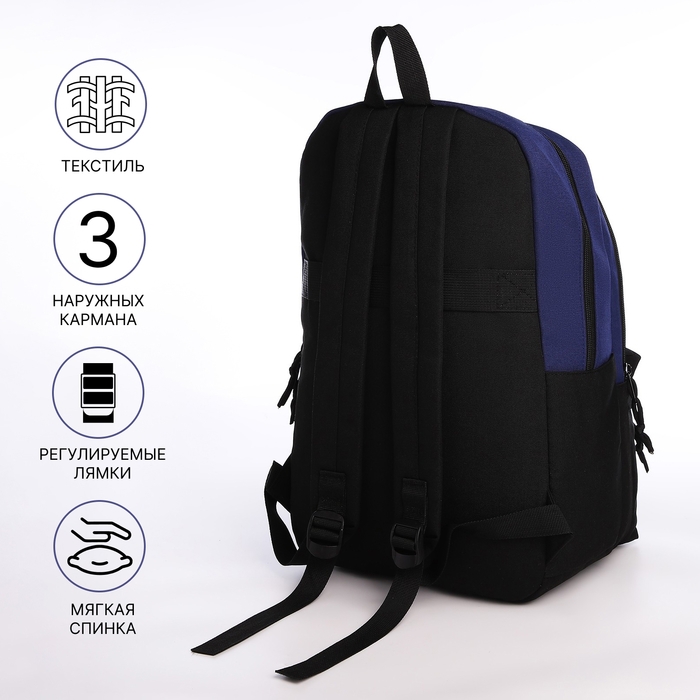 Рюкзак школьный из текстиля на молнии, 3 кармана, сумка, держатель для чемодана, цвет чёрный/синий