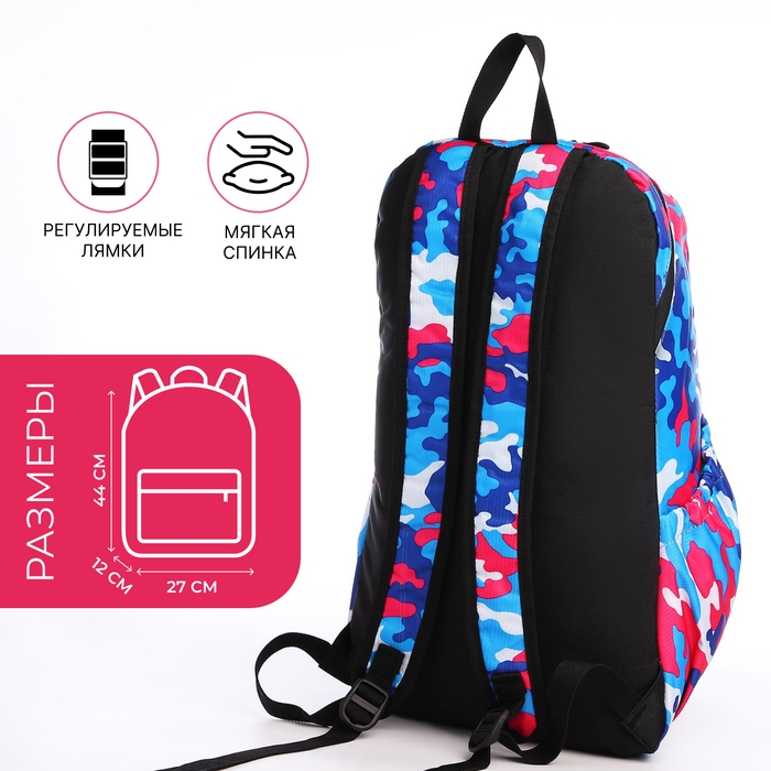 Рюкзак водонепроницаемый на молнии, 3 кармана, цвет голубой/розовый