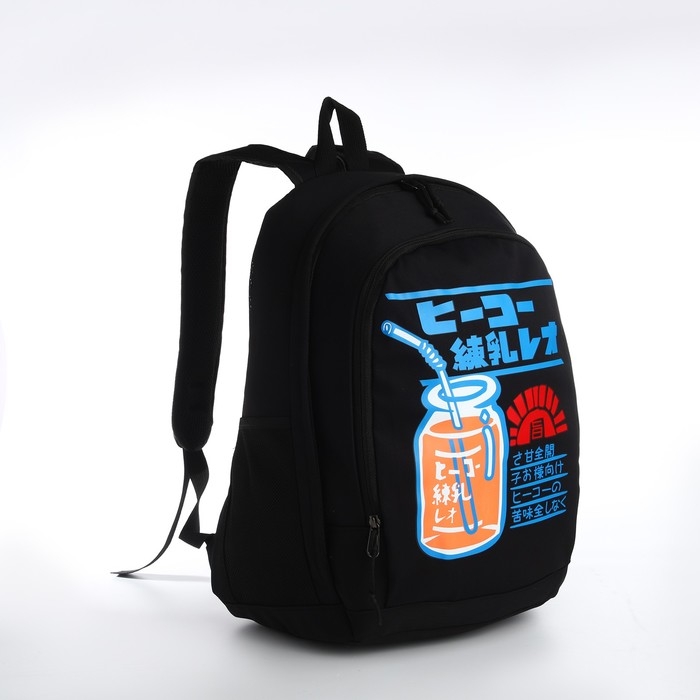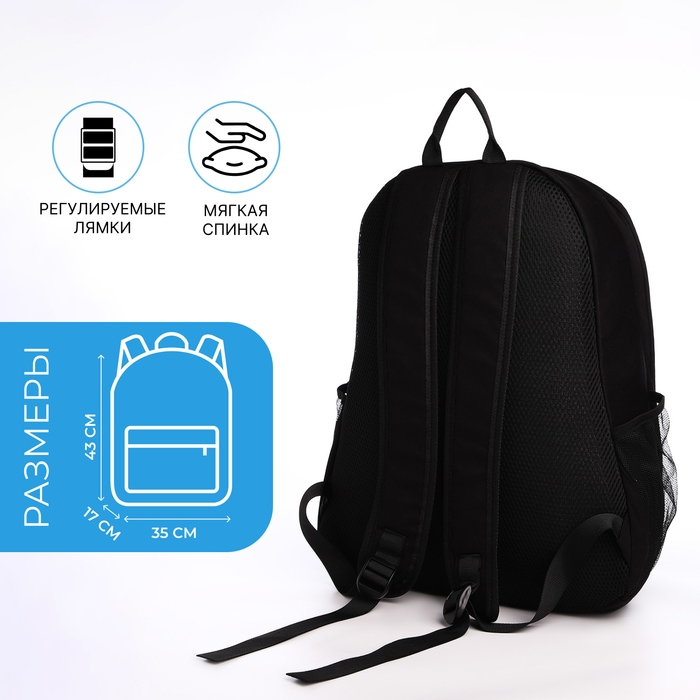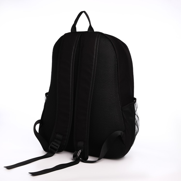 Рюкзак молодёжный из текстиля на молнии, 3 кармана, цвет чёрный
