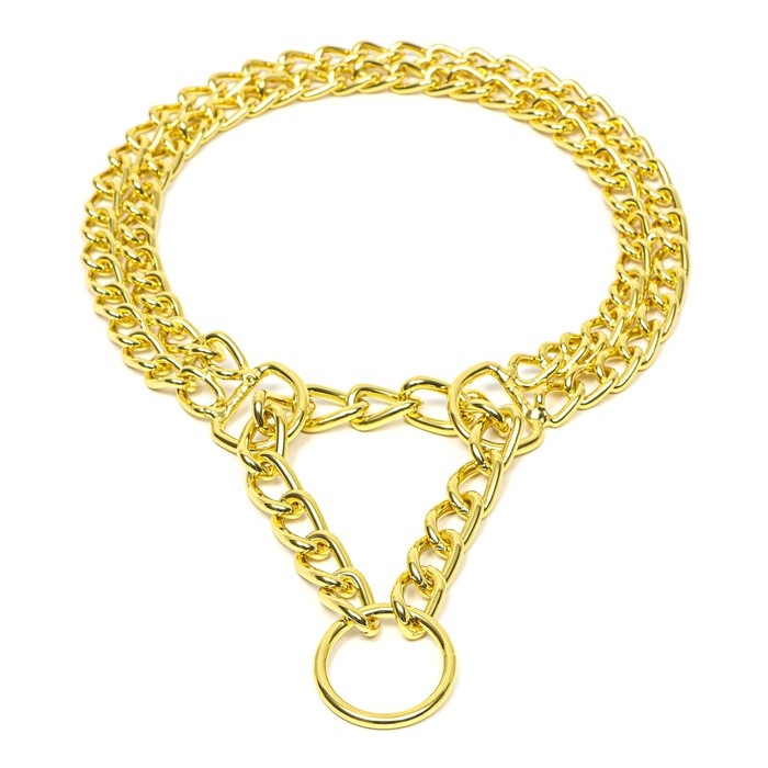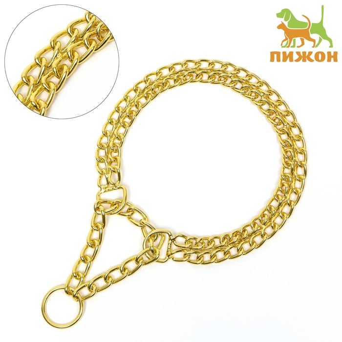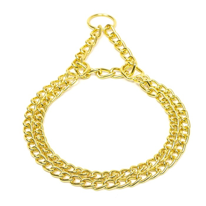 Ошейник - полуудавка металлический двухрядный, 50 см, толщина проволоки 2,5 мм, золотистый