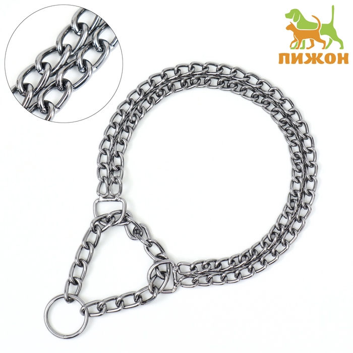 Ошейник цепочка для собак - максимально удобный аксессуар, надежно крепится на шее питомца и совершенно не утяжеляет ее. Металлический ошейник-полуудавка выполнен из стали. Благодаря своей прочности, но при этом гибкости цепь не натирает кожу собаки и не заминает ее шерсть. Прочный и износостойкий ошейник для собак имеет металлические звенья цепи. Удобные кольца на концах позволяют быстро и легко пристегнуть поводок. Ошейники-полуудавка подходит для тренировок, прогулок и выставок собаки. А стильный дизайн сделает из вашего питомца настоящего короля улицы.