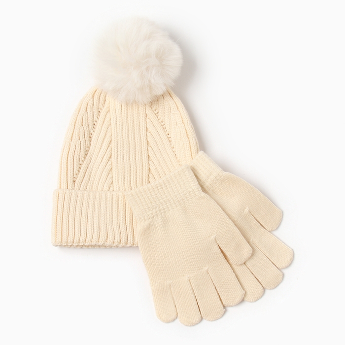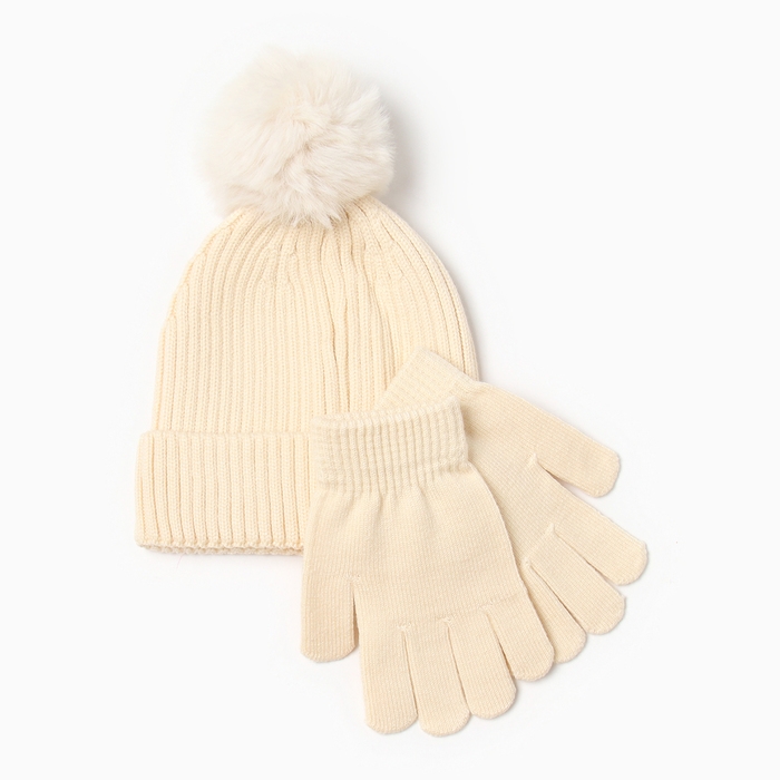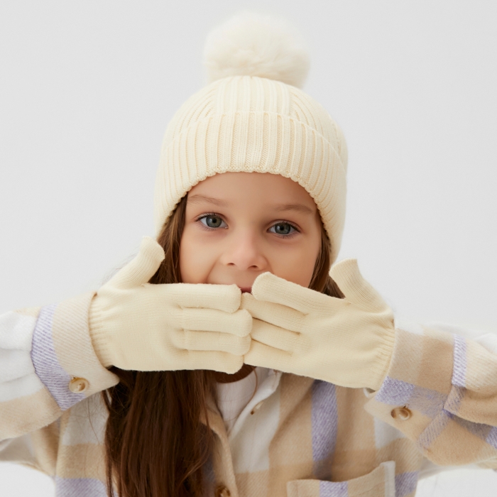 Комплект шапка и перчатки KAFTAN р.52-54 молочный