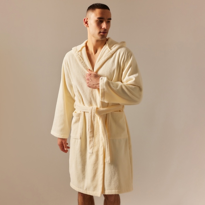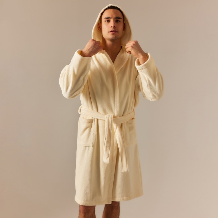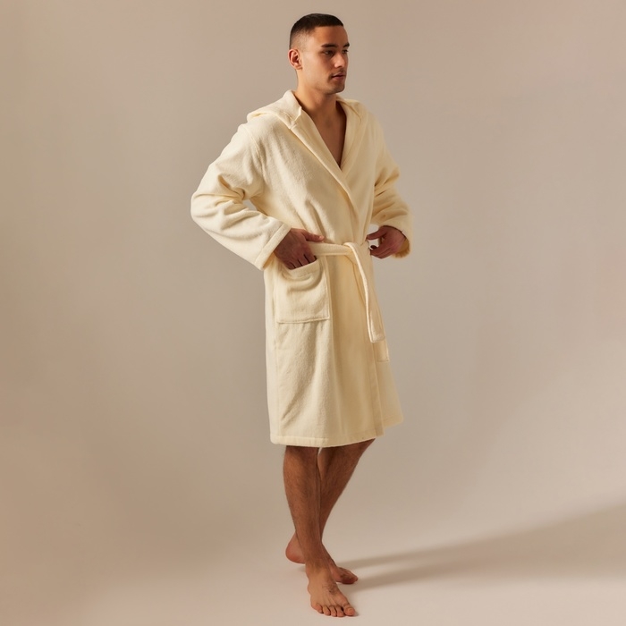 Халат махровый с капюшоном мужской SL HOME: Basic "Айвори", размер S, 100% хлопок, 420 г/м2