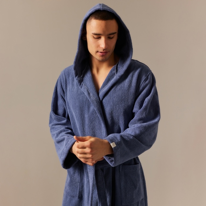 Халат махровый с капюшоном мужской SL HOME: Basic "Ривьера", размер S, 100% хлопок, 420 г/м2