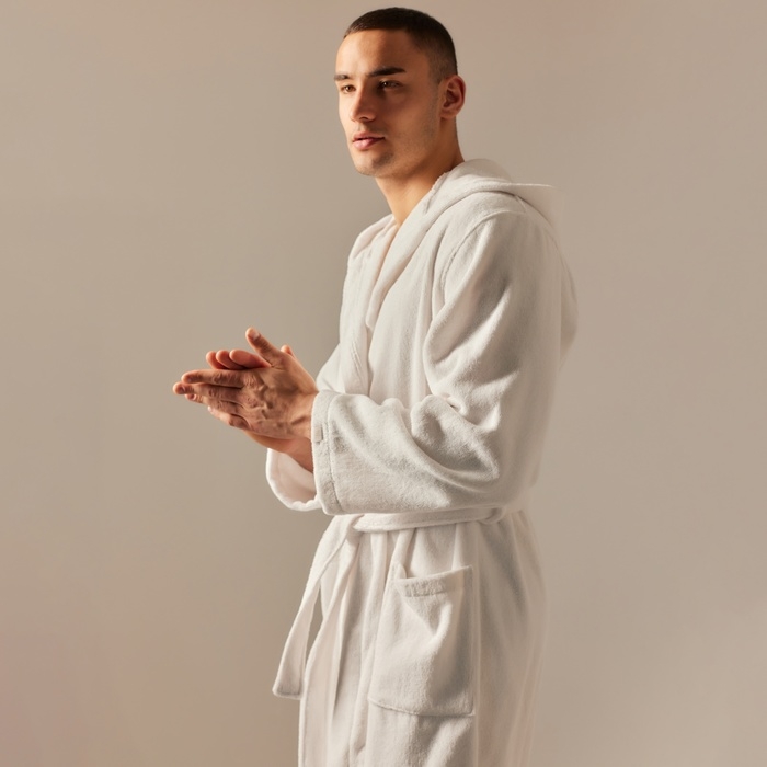 Халат махровый с капюшоном мужской SL HOME: Basic "Блан де Блан", размер M, 100% хлопок, 420 г/м2 98
