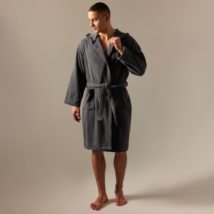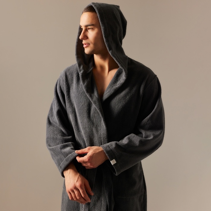 Халат махровый с капюшоном мужской SL HOME: Basic "Гри Сандре", размер M, 100% хлопок, 420 г/м2 9849