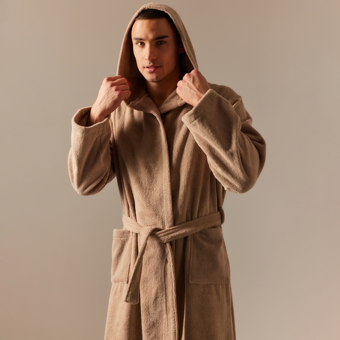 Халат махровый с капюшоном мужской SL HOME: Basic "Саббиа", размер L, 100% хлопок, 420 г/м2