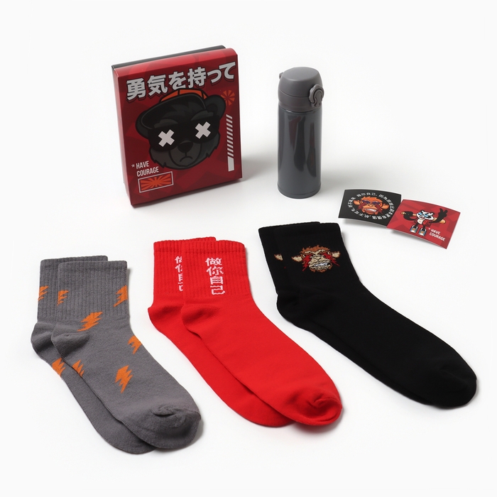 Подарочный набор термос и носки 3 пары KAFTAN "Медведь", р. 33-35 (20-22 см)