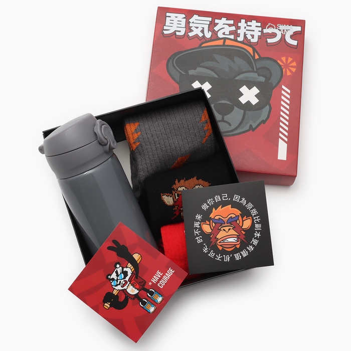 Подарочный набор термос и носки 3 пары KAFTAN "Медведь", р. 37-39 (23-25 см)