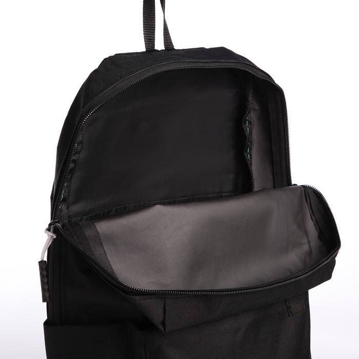 Рюкзак молодёжный на молнии, водонепроницаемый, 3 наружных кармана, цвет чёрный