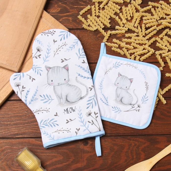 Набор кух. Доляна "Котенок": варежка 20х28 см, прихватка 17х17 см, 35% хл, 65% пэ